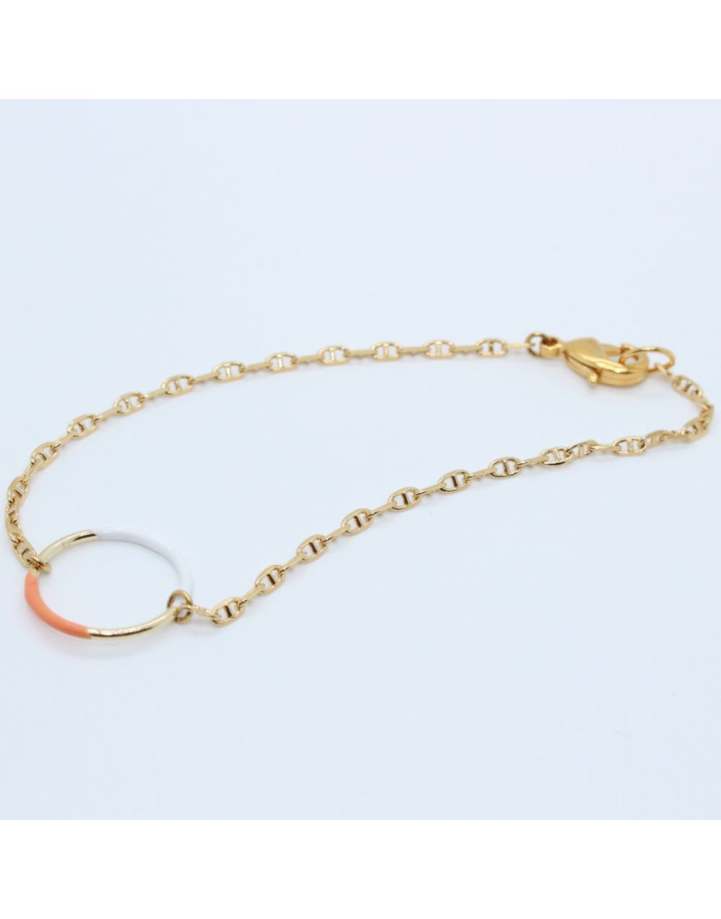 Laissez vous séduire par ce bracelet doré avec son anneau tricolore aux couleurs printanières.