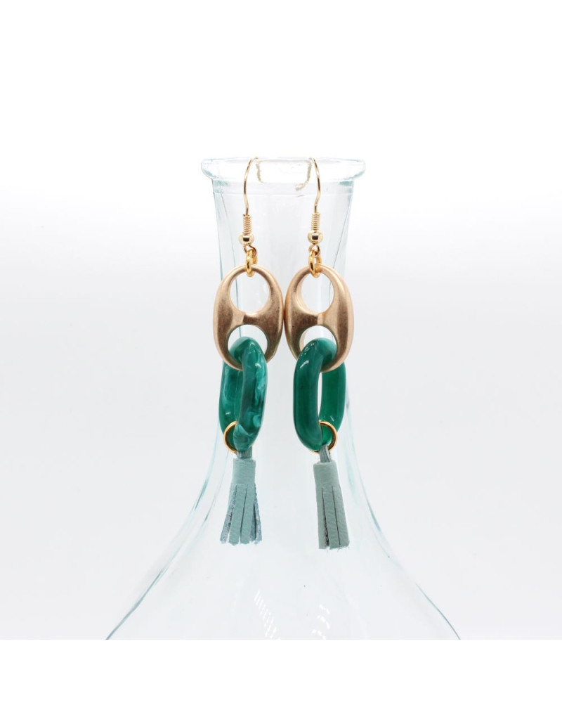 Conçu pour sublimer votre look de jour comme de nuit, ces boucles dorées grain de café avec sa résine ovale verte vous apporteront l'élégance recherchée.